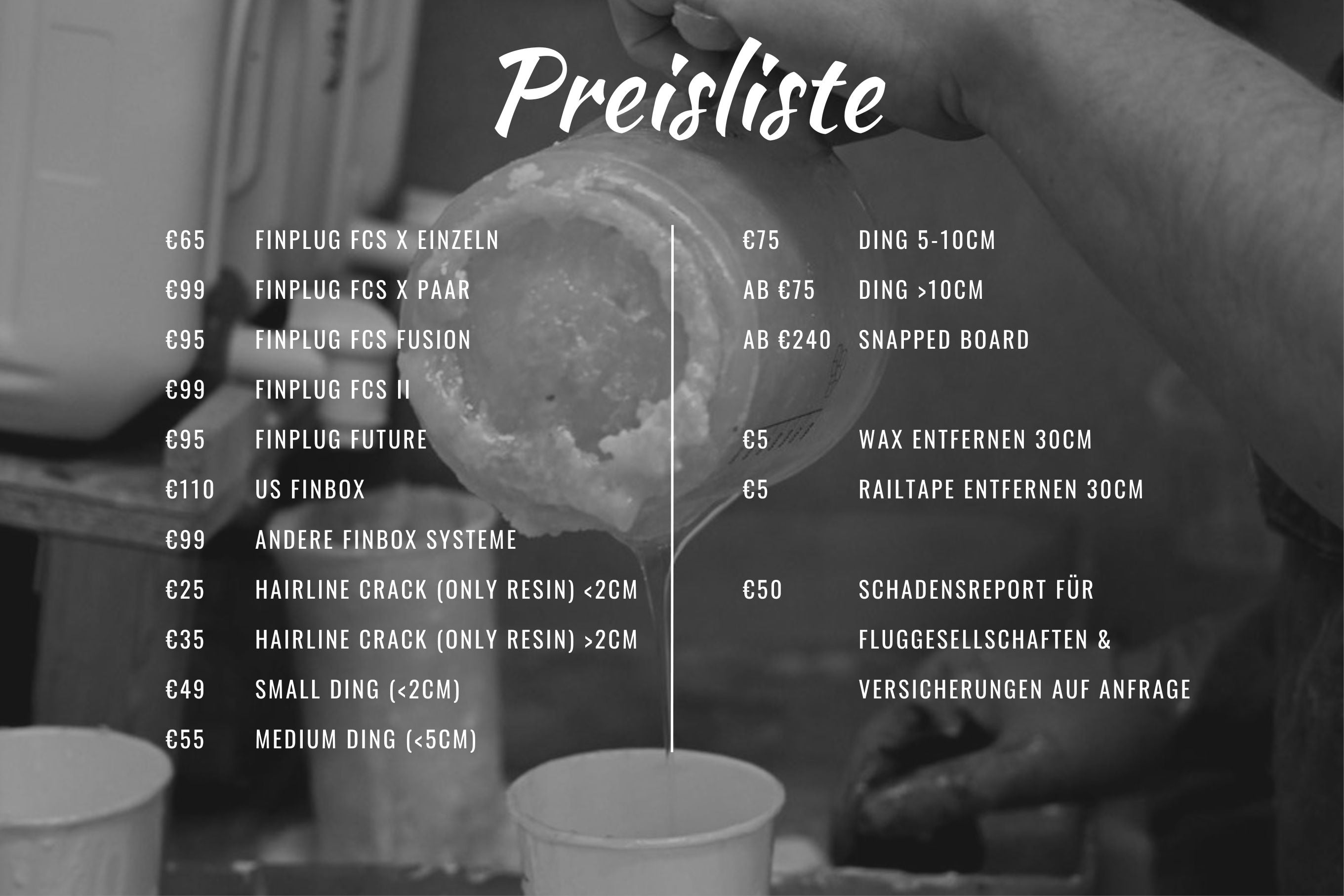 Dein Surfboard hat einen Riss, ein Loch oder einen beschädigten Rail? Kein Problem! Mit unserem Ding-Repair Service bringen wir dein Board schnell und zuverlässig wieder in Topform.